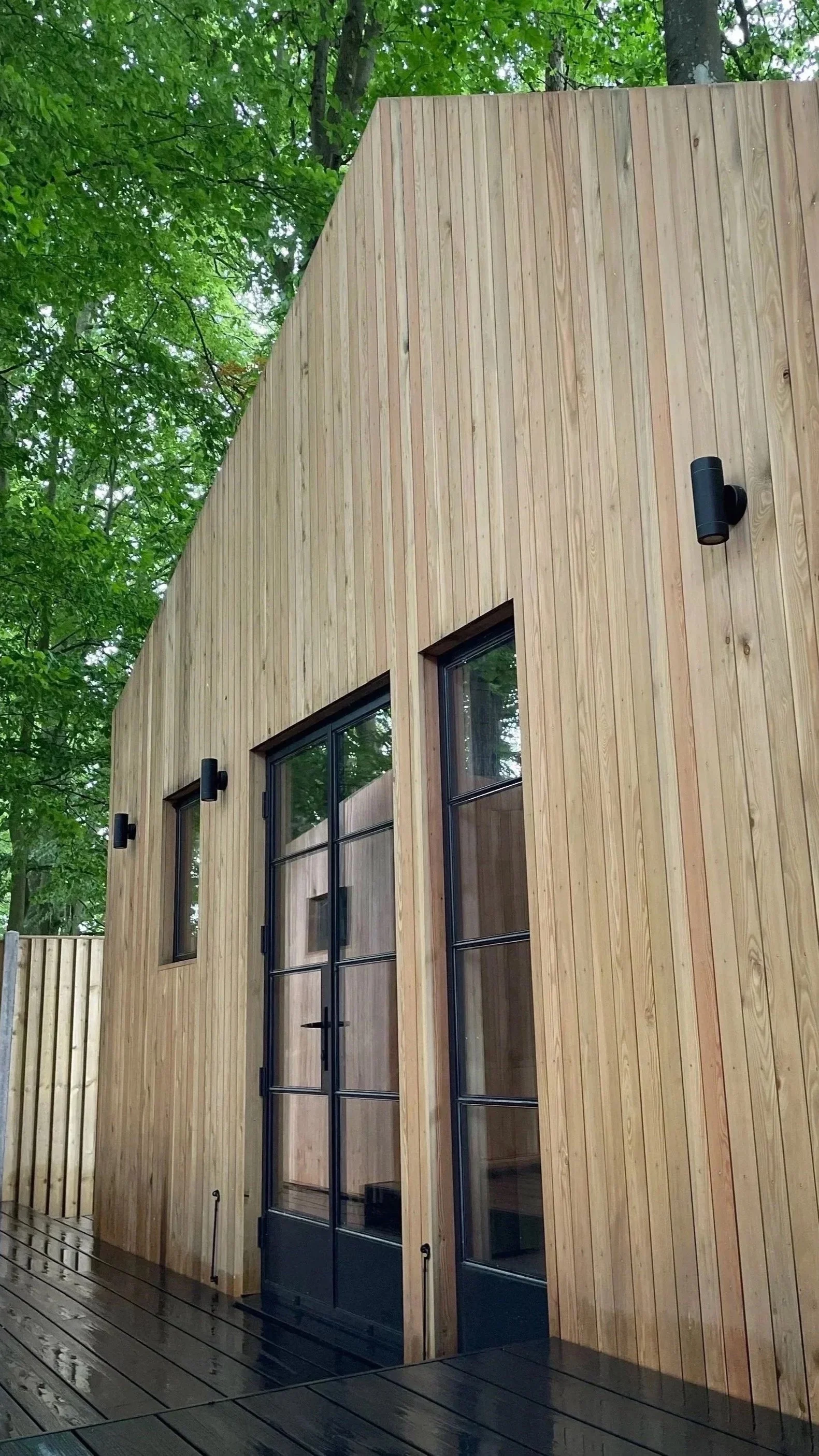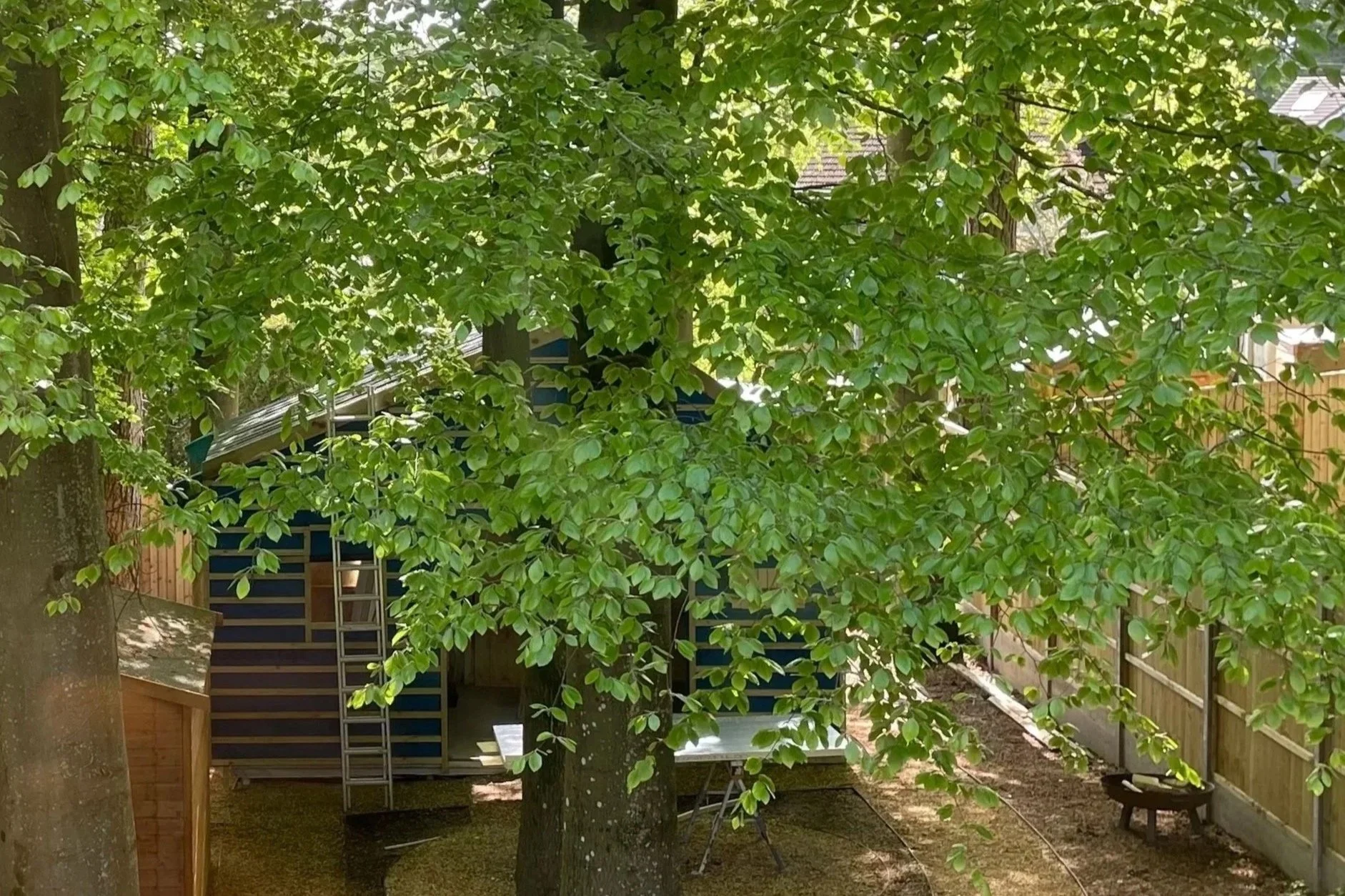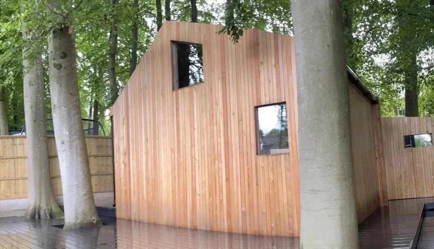 Design and Project management of a garden room and home office within a woodland setting using unused garden space to provide a home cinema, office, mezzanine storage and a family fire pit area.